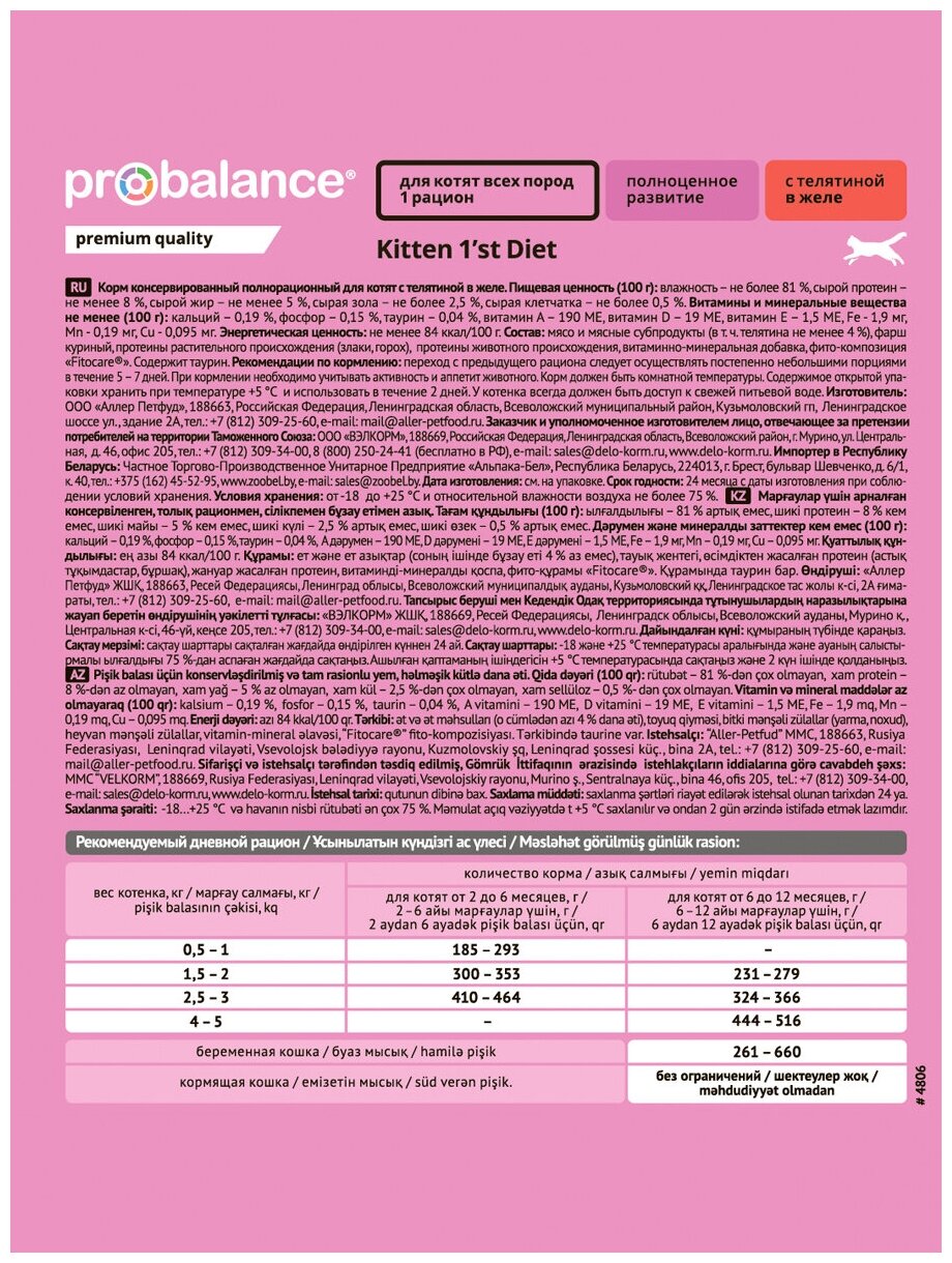 Набор №7. 2 Вкуса. Консервированный корм для котят Probalance с Телятиной в желе и Кроликом в желе 25 штук по 85 гр. интересное: