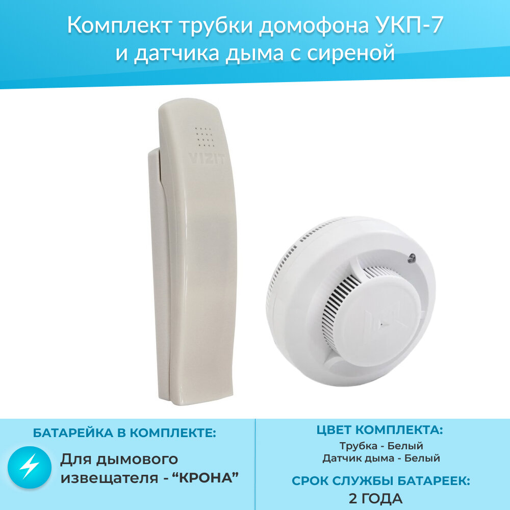 Купить Комплект трубки домофона УКП-7 и датчика дыма с сиреной (на батарейке)