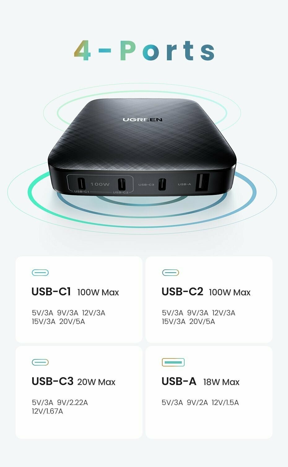 UGREEN. Сетевое зарядное устройство USB A + 3 USB C 100W Desktop Fast Charger (70870)