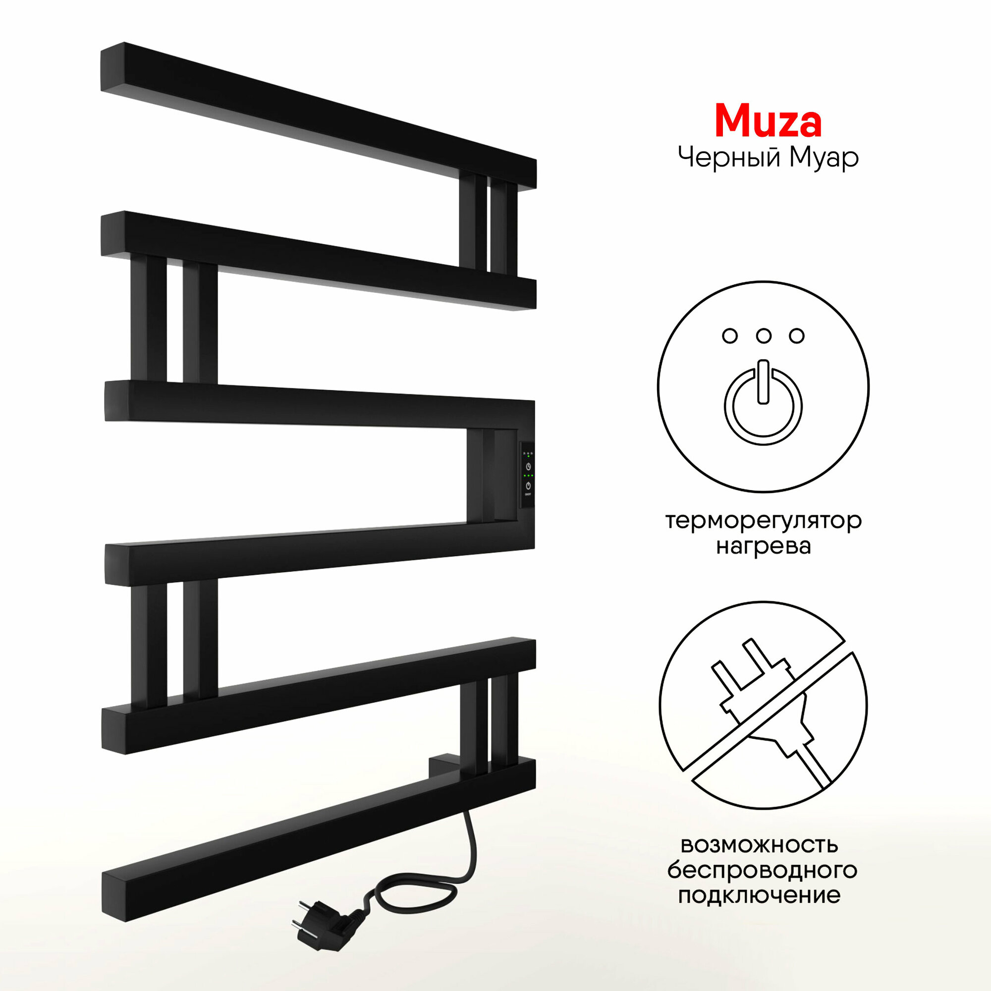 Полотенцесушитель INDIGO® INDIGO Muza (electro) 60/50 (таймер, скрытый провод справа, Черный муар)