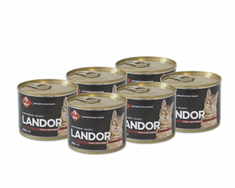 Полнорационный влажный корм LANDOR для взрослых кошек утка с брусникой 200г х 6шт. интересное: