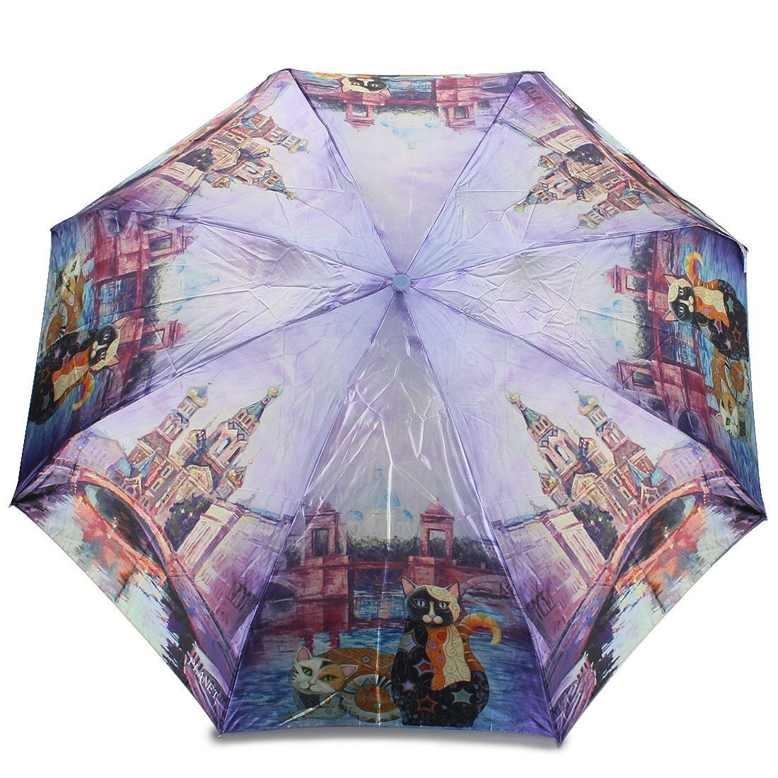 Женский зонт механический "Городские кошки" PL-187 Blue интересное: