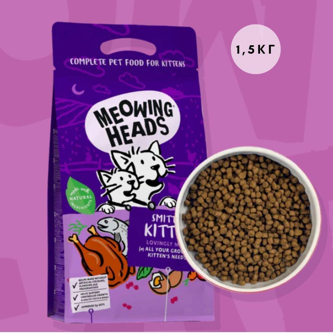Meowing Heads / Сухой корм для Котят с Курицей и рисом "восторженный котенок" , 1,5 кг