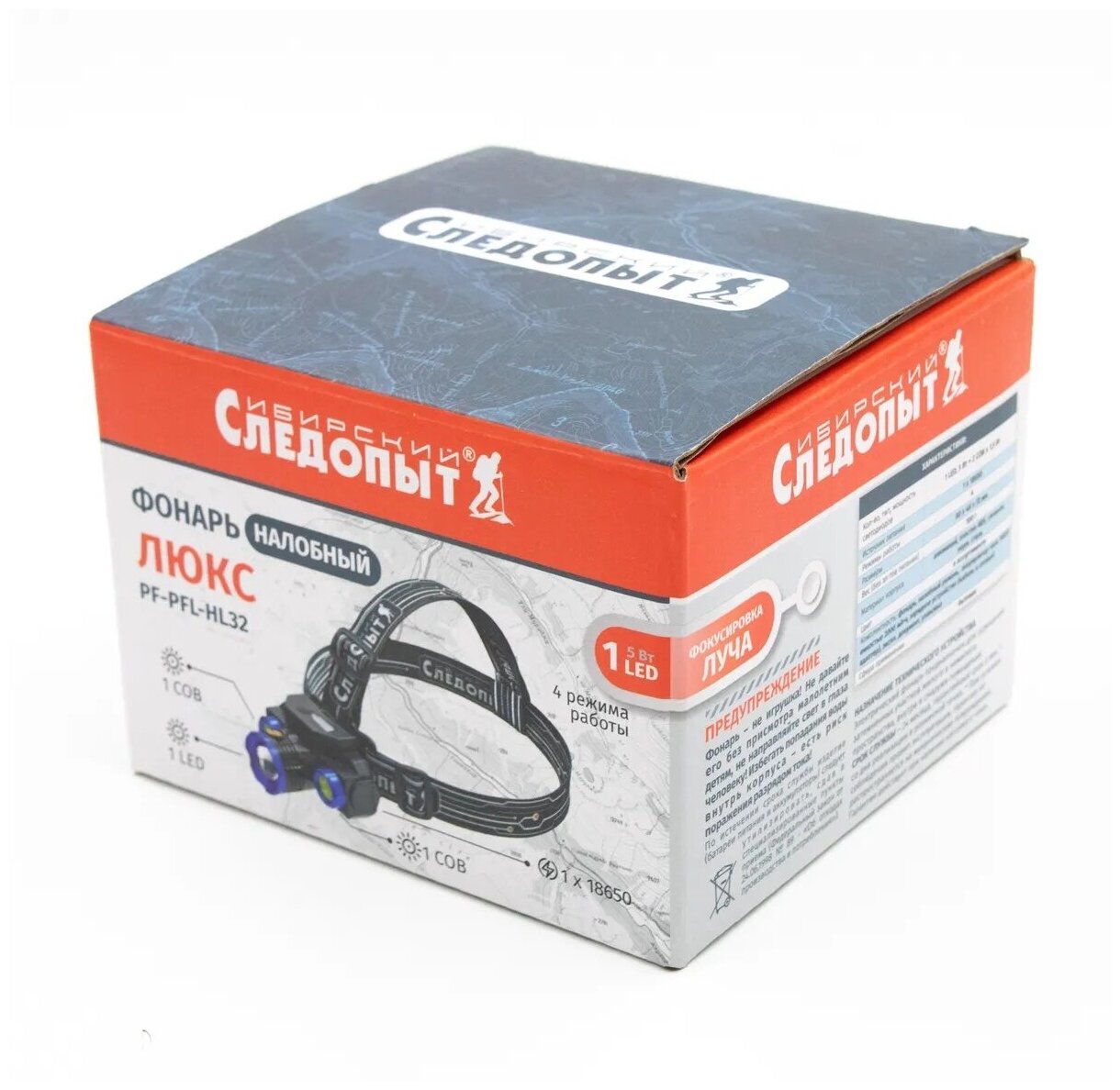 PF-PFL-HL32 Фонарь налобный "сибирский следопыт-люкс", 1 LED + 2 COB, zoom, аккум. 220В, USB
