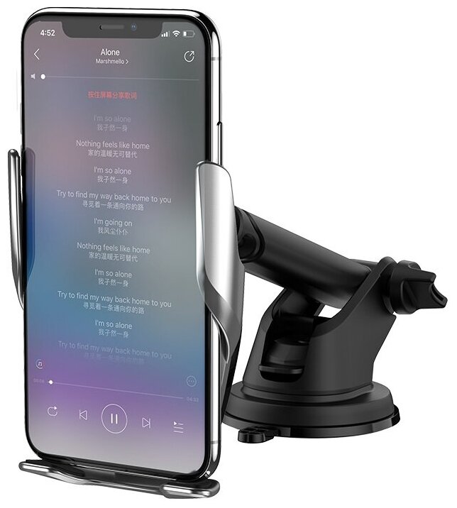 Держатель с беспроводной зарядкой Hoco S14 Surpass silver
