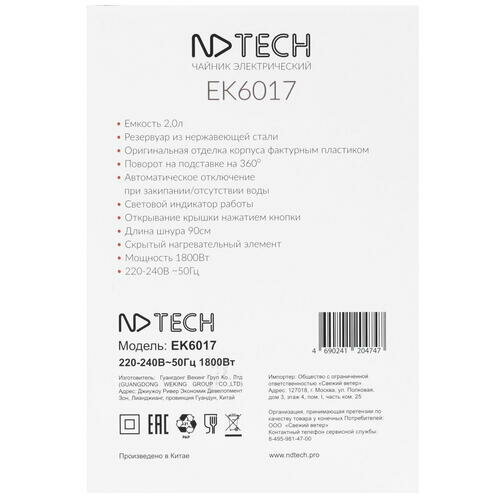 Ниже Вы можете прочитать отзывы на Электрочайник NDTech EK6017 белый, ознакомится с подробными характеристиками, посмотреть интересные обзоры и фотографии на Электрочайник NDTech EK6017 белый.