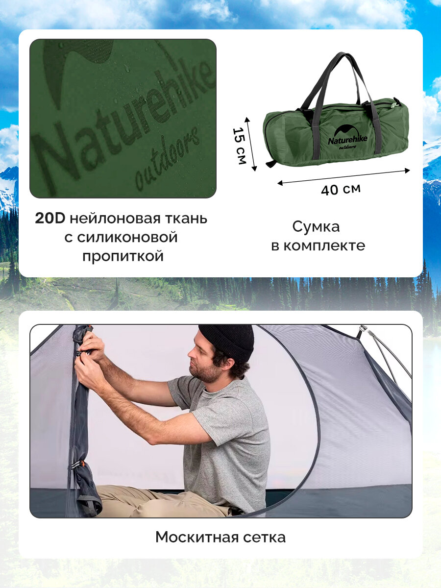 Палатка Naturehike Cycling Si 1-местная, алюминиевый каркас, сверхлегкая, зеленый интересное: