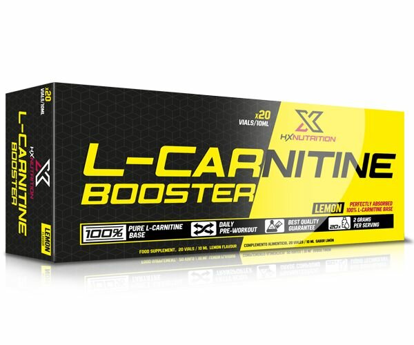 Купить HX NUTRITION PREMIUM L-CARNITINE BOOSTER л-карнитин упаковка 20 ампул по 10 мл лимон