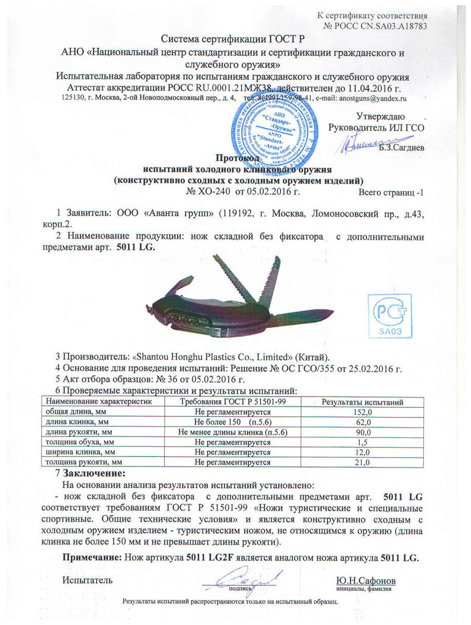 Швейцарский нож Pirat 5011LG2F, длина лезвия 6.3 см интересное: