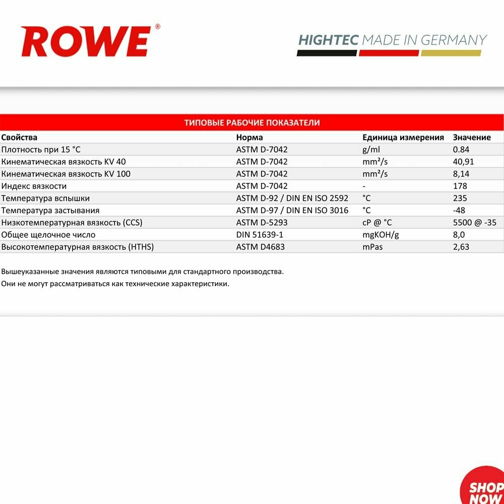 ROWE Масло Мот.hightec Synt Rs C5 Sae 0W-20 1Л