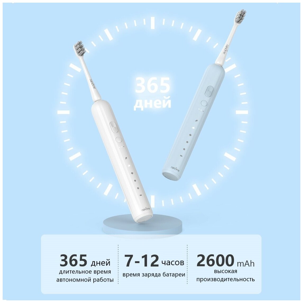 Электрическая звуковая зубная щетка Nandme NX7000-B12 (в комплекте двенадцать насадок), голубой интересное: