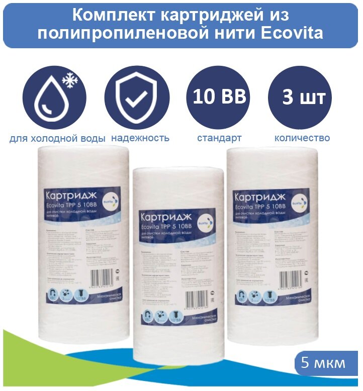 Купить Картридж полипропиленовый Ecovita TPP 5 10BB для холодной воды - 3 шт