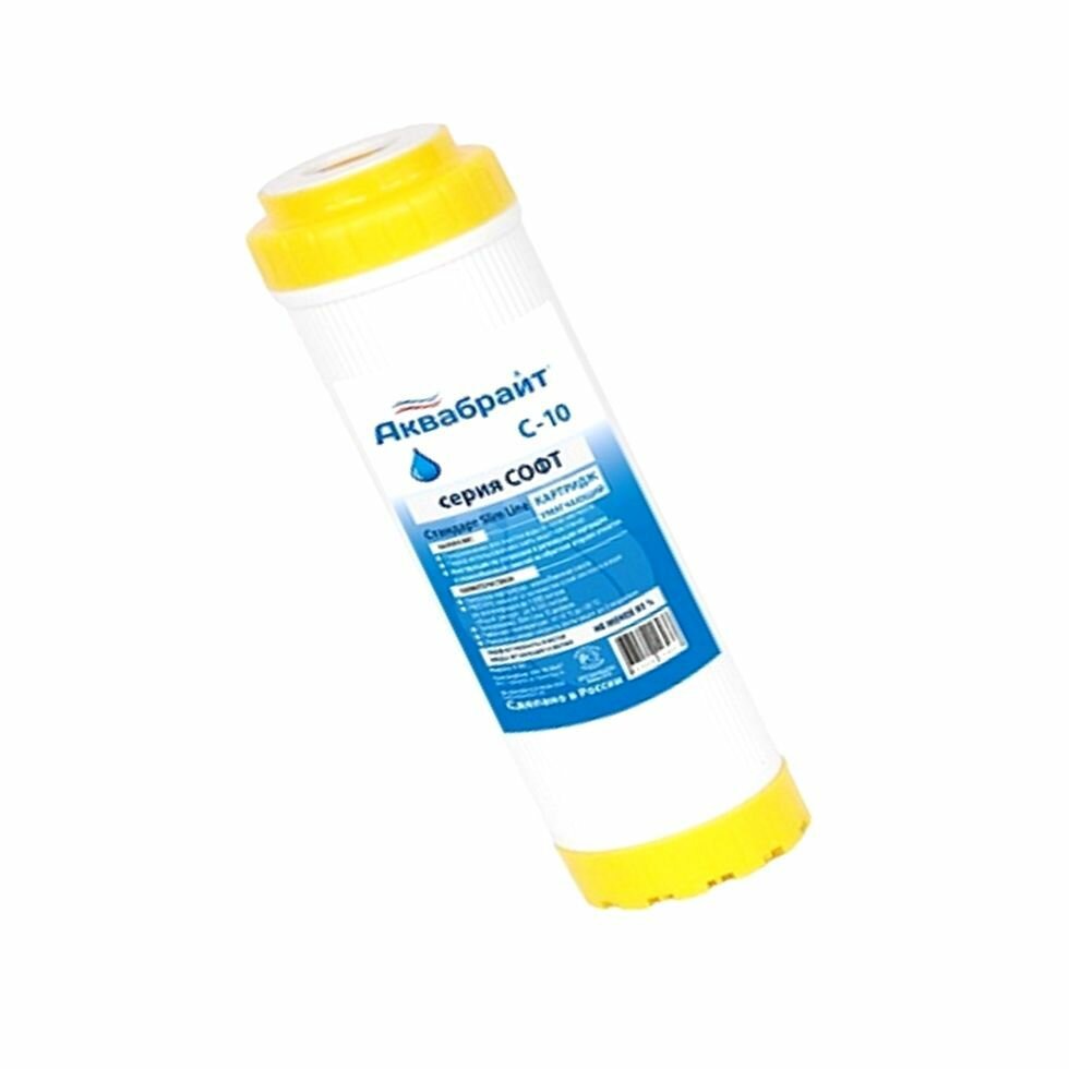 Картридж для умягчения воды C-10 Аквабрайт (SL10) серия Софт, Карбон блок умягчающий (ионообменный) с возможностью регенерации