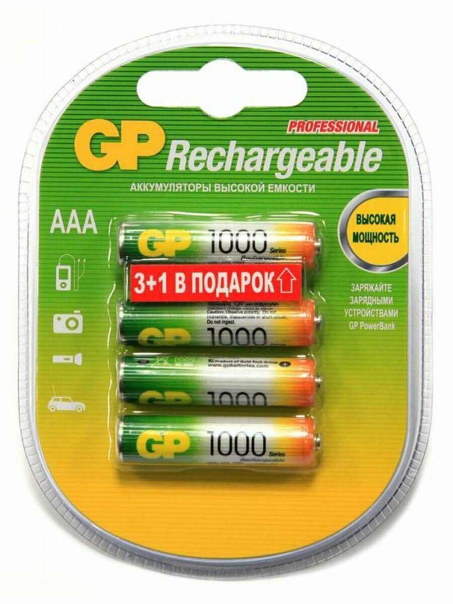 Аккумулятор GP 100AAAHC3/1 AAA NiMH 1000mAh (промо:3+1) (4 штуки)