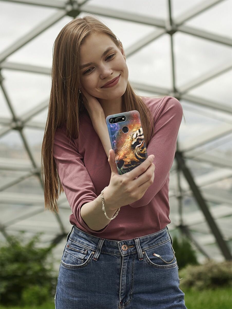 Ультратонкий силиконовый чехол-накладка для Honor View 20 (V20) с принтом "Космический тигр" интересное: