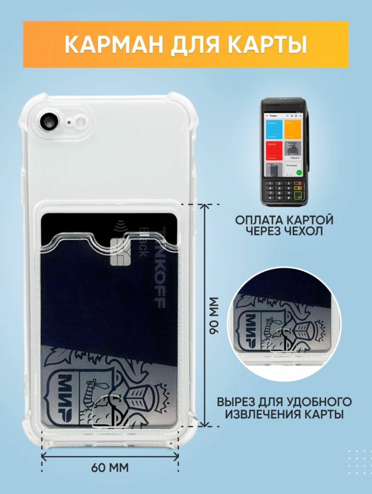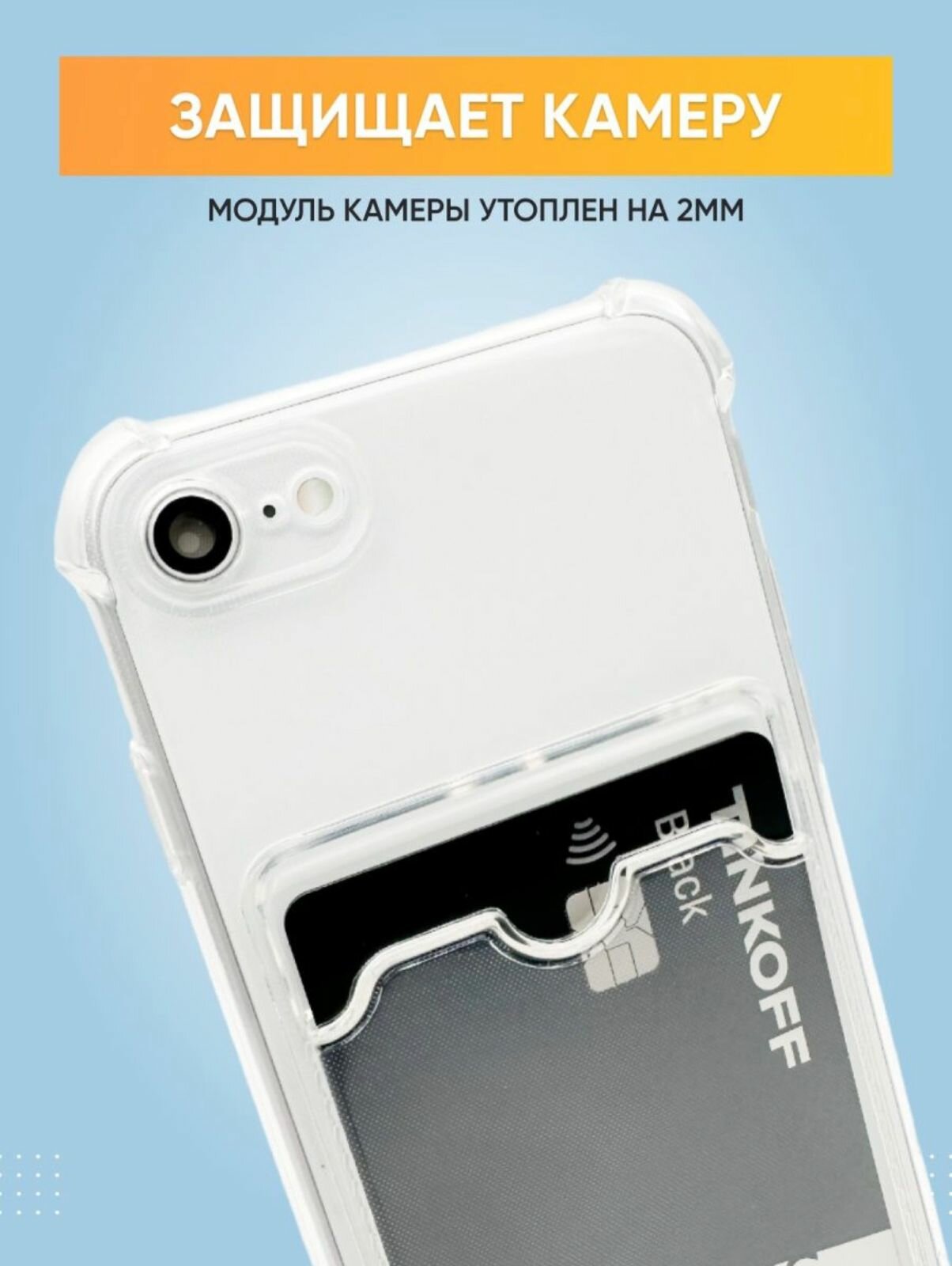 Прозрачный силиконовый чехол для IPhone 7/8/SE 2020 с карманом для карт Card Case интересное: