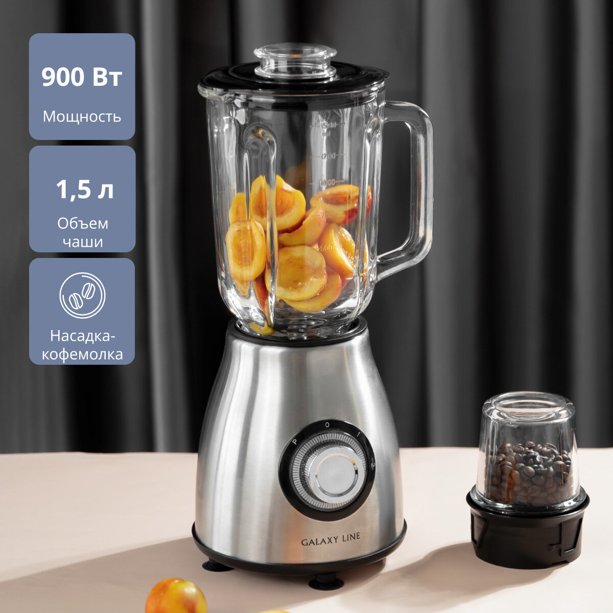Блендер Galaxy GL 2163, стационарный, 900 Вт, 1.5 л, кофемолка, серебристый интересное: