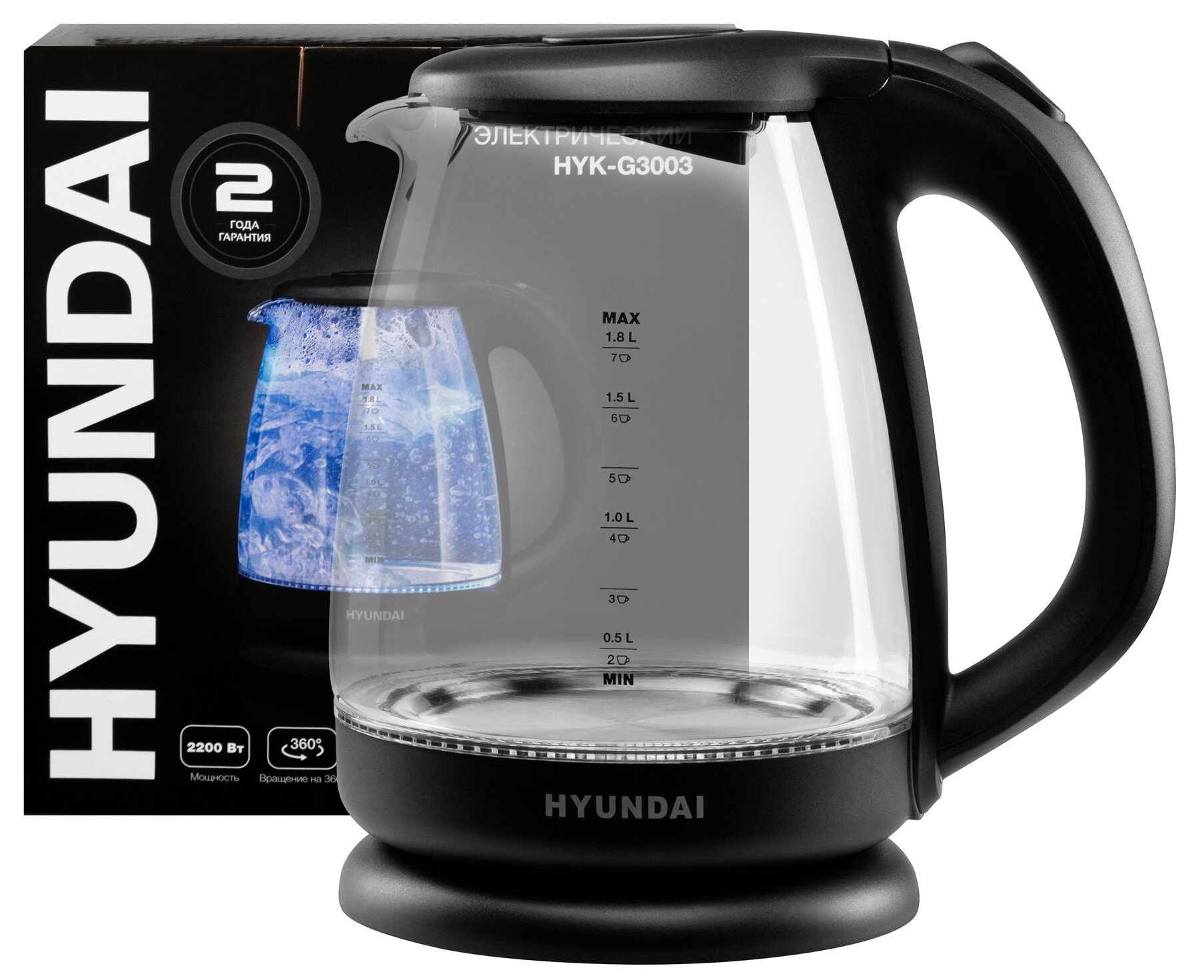 Чайник электрический Hyundai HYK-G3003, 2200Вт, черный интересное: