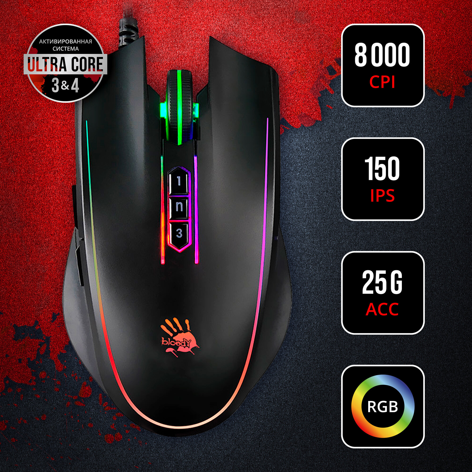 Мышь A4 Bloody P81s черный оптическая (8000dpi) USB (8but) интересное: