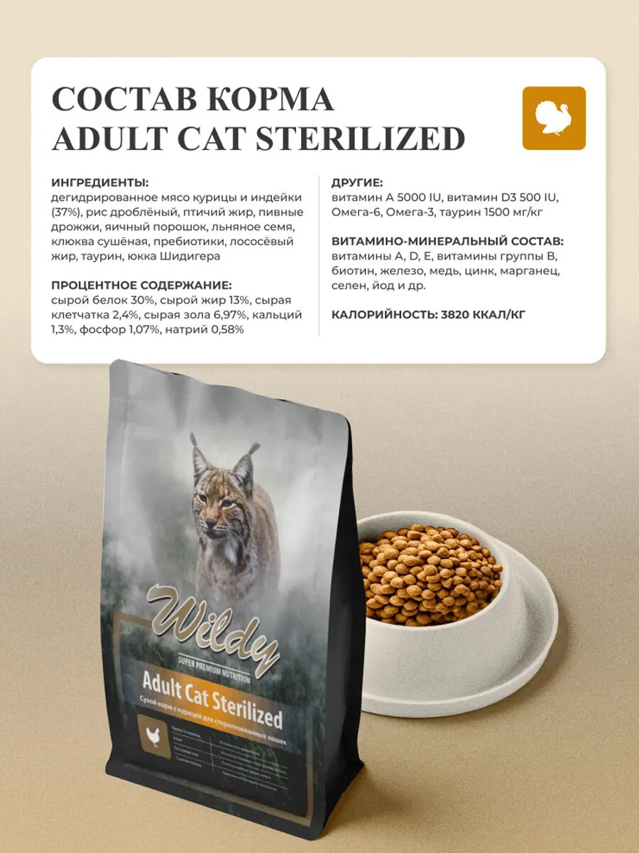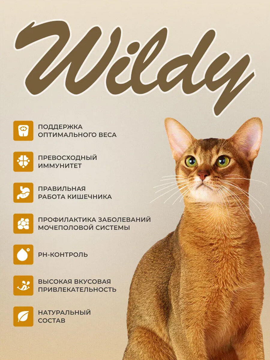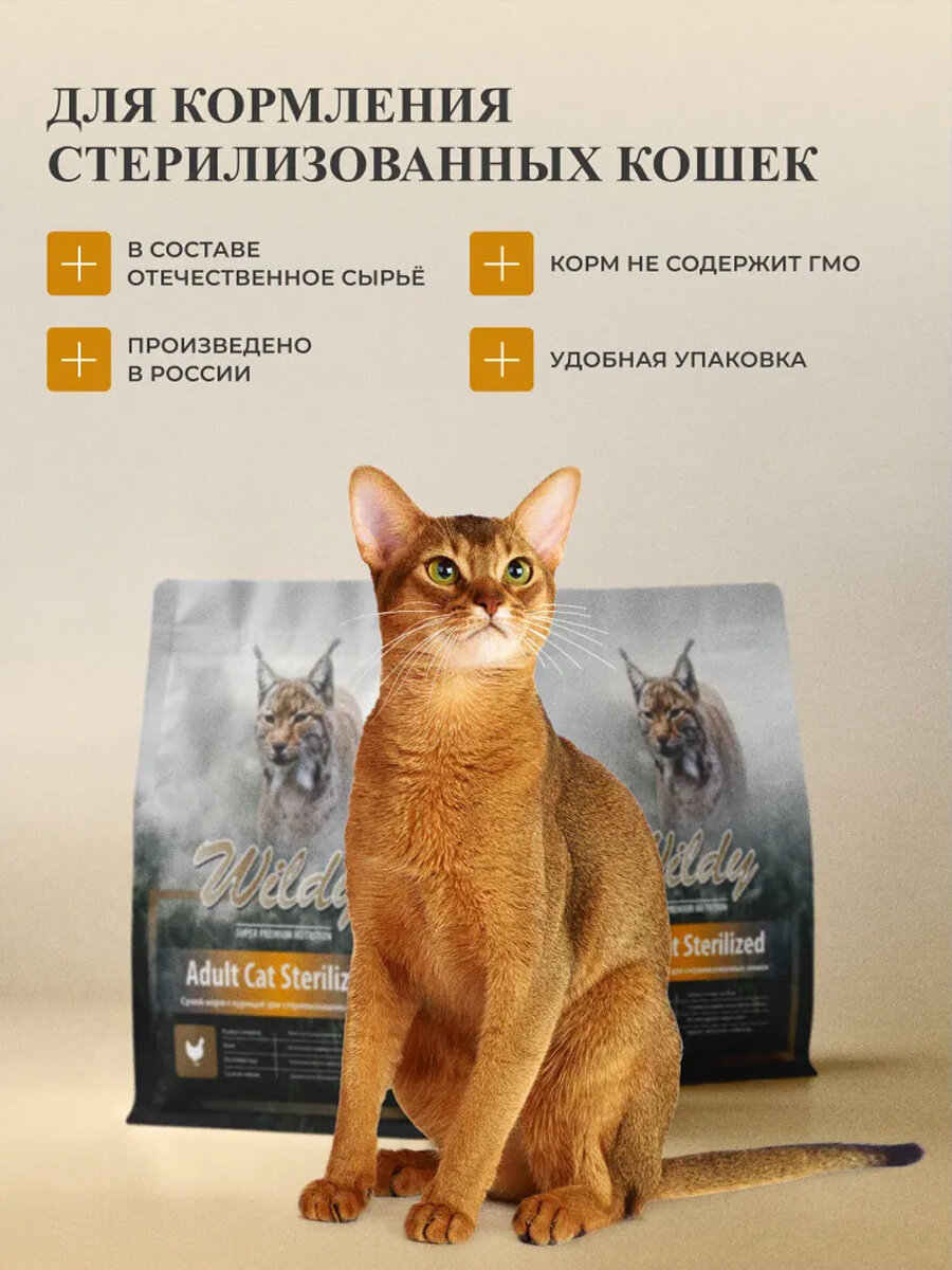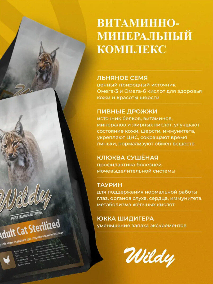 WILDY ADULT CAT STERILIZED для взрослых кастрированных котов и стерилизованных кошек с курицей (3 + 3 кг) интересное: