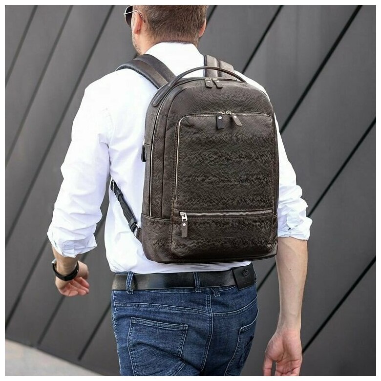 Городской мужской рюкзак из кожи BRIALDI Pathfinder relief brown (коричневый) кожаный стильный ранец для ноутбука 14 дюймов или документов A4 интересное: