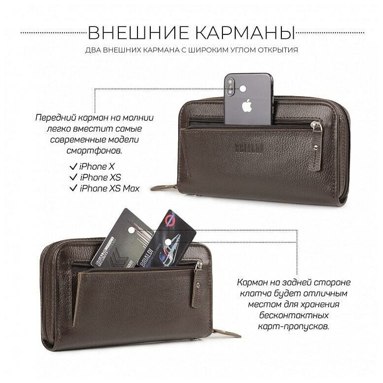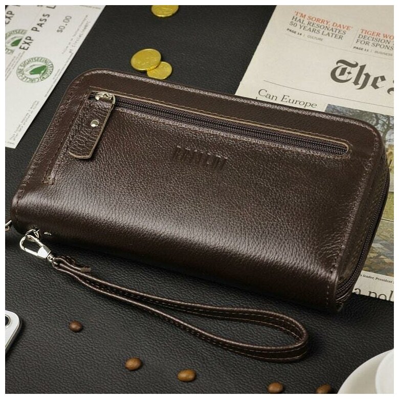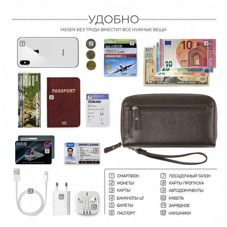 Клатч мужской из натуральной кожи с отделением для телефона Brialdi Mesen relief brown (коричневый) с ремешком на запястье интересное: