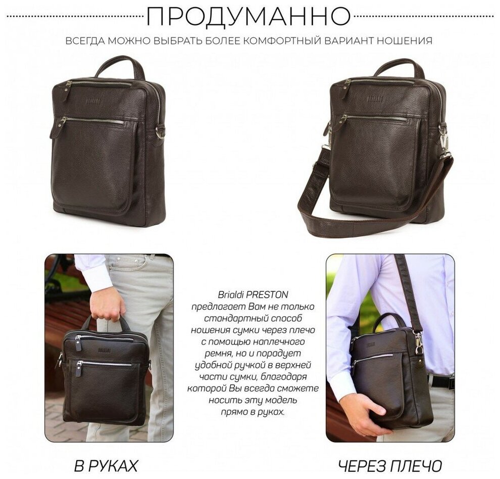 Кожаная сумка через плечо BRIALDI Preston (Престон) relief brown интересное: