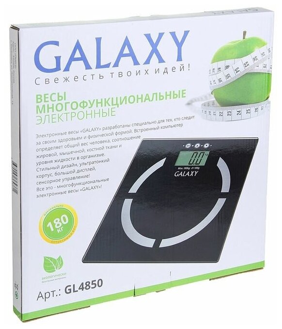 Весы напольные Galaxy GL 4850, диагностические, до 180 кг, 2хAAA, стекло, чёрные