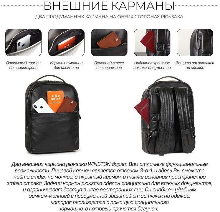 Стильный деловой рюкзак с 19 карманами и отделениями BRIALDI Winston (Винстон) relief black интересное: