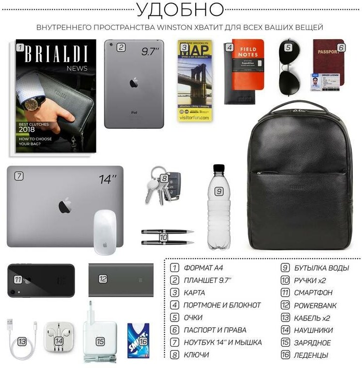 Ниже Вы можете прочитать отзывы на Стильный деловой рюкзак с 19 карманами и отделениями BRIALDI Winston (Винстон) relief black, ознакомится с подробными характеристиками, посмотреть интересные обзоры и фотографии на Стильный деловой рюкзак с 19 карманами и отделениями BRIALDI Winston (Винстон) relief black.