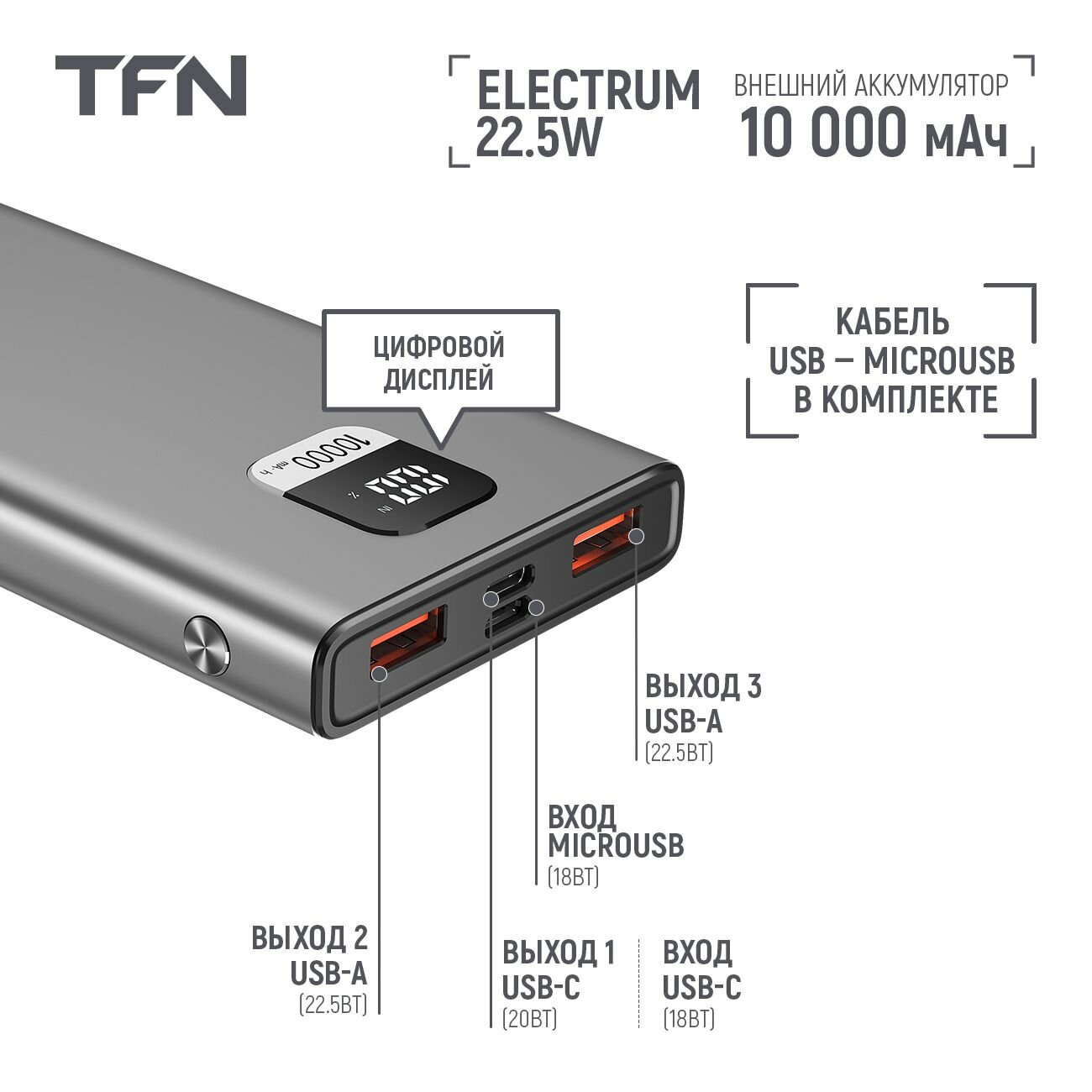 Купить Внешний аккумулятор TFN Electrum 10000mAh Grey (TFN-PB-294-GR)