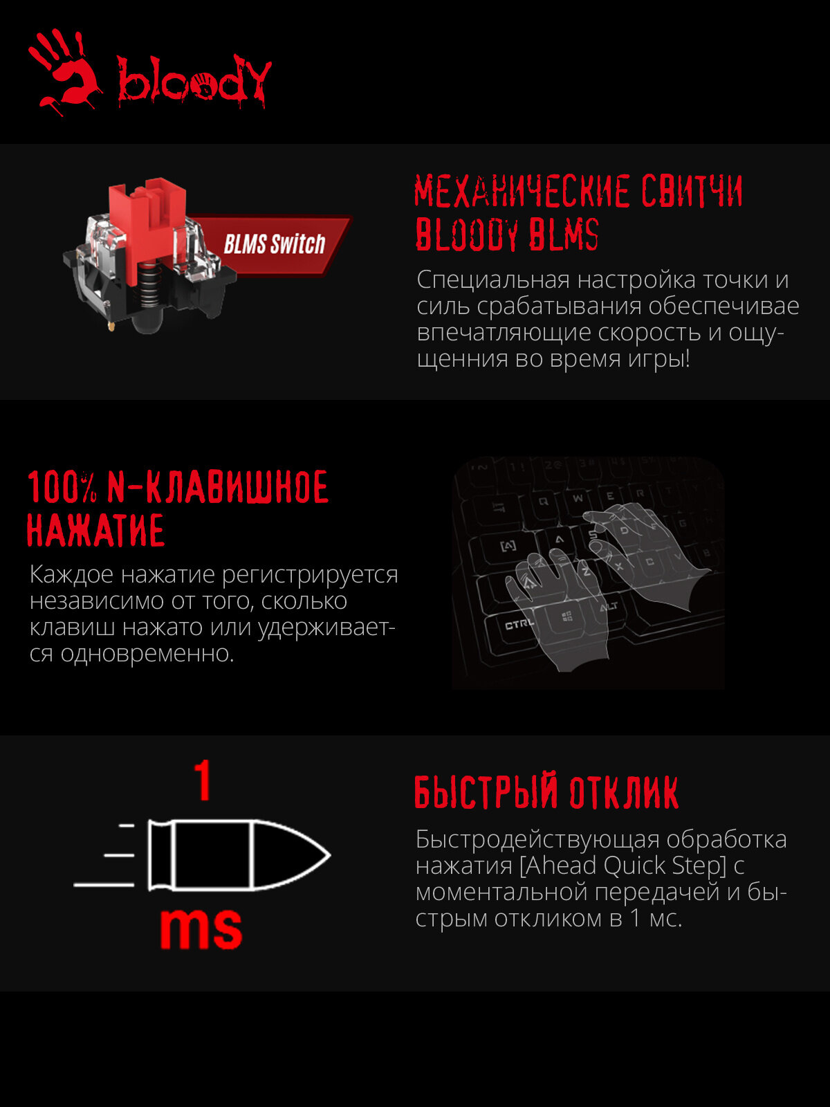 Клавиатура A4Tech Bloody S510 механическая черный USB for gamer (S510 BLACK BLMS RED) интересное: