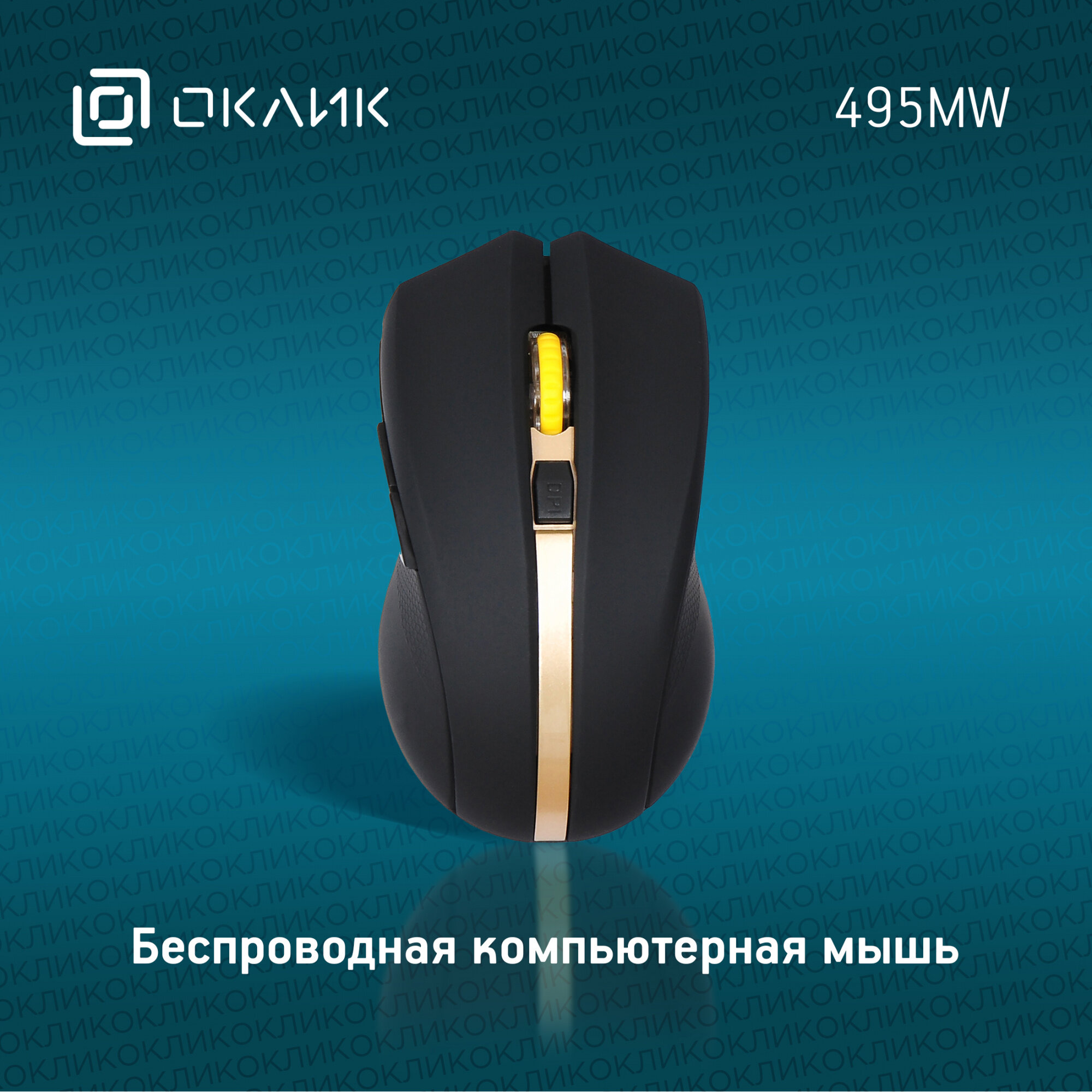 Мышь Oklick 495MW, оптическая, беспроводная, USB, черный и золотистый [998168]