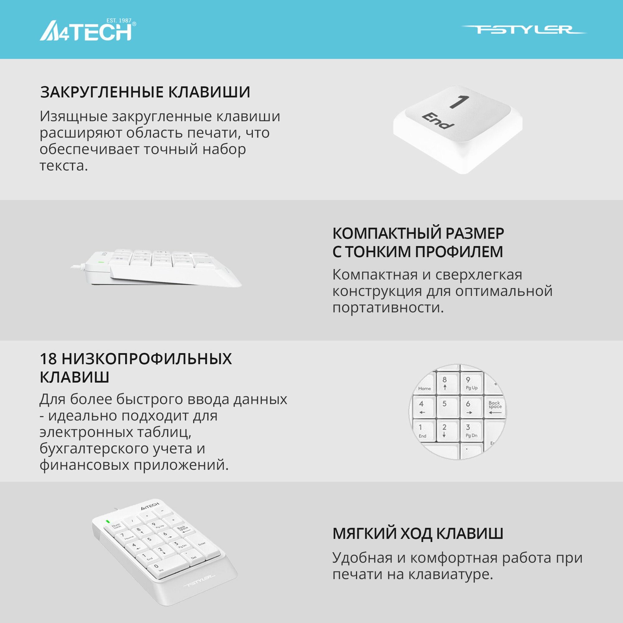Числовой блок A4Tech Fstyler FK13P белый USB slim для ноутбука