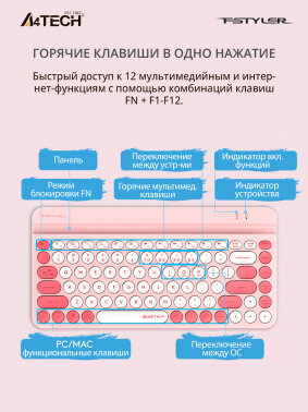 Клавиатура A4Tech Fstyler FBK30 розовый USB беспроводная BT/Radio slim Multimedia (FBK30 RASPBERRY) интересное: