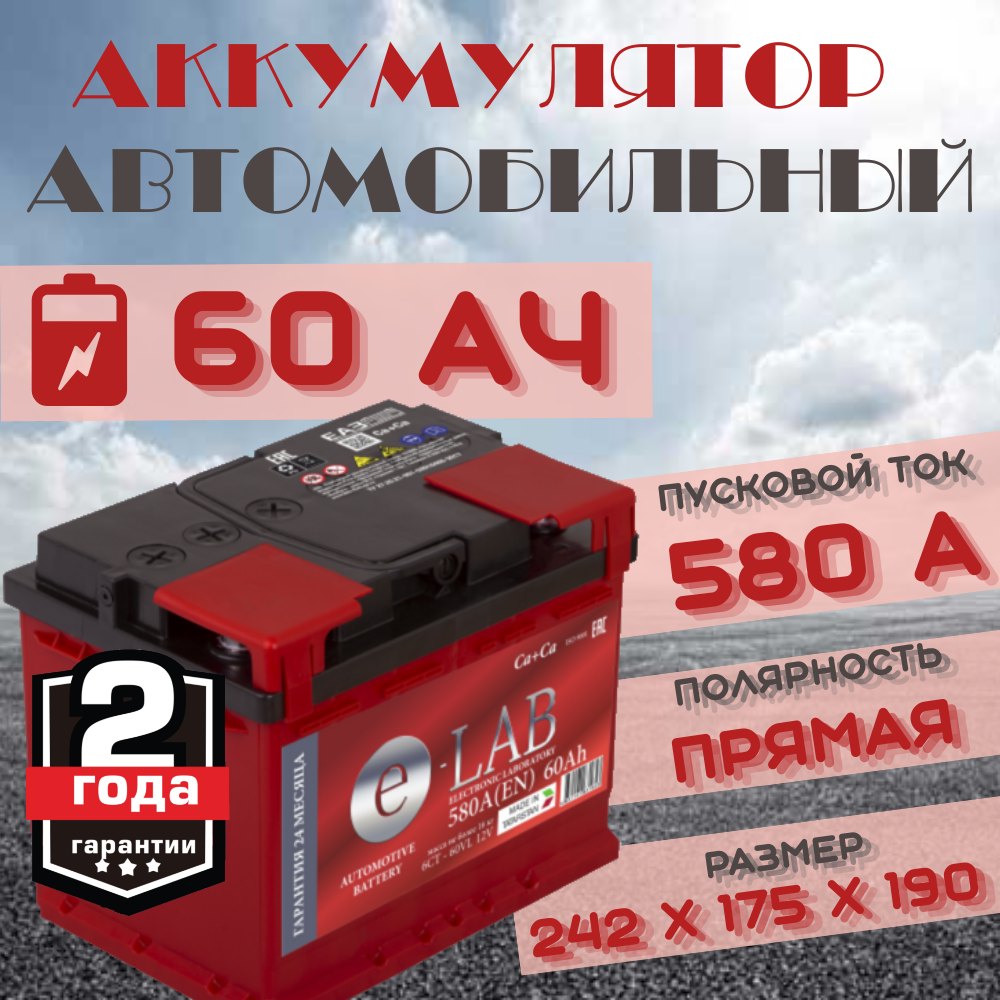 Аккумулятор E-LAB 60 Ач прямая полярность интересное: