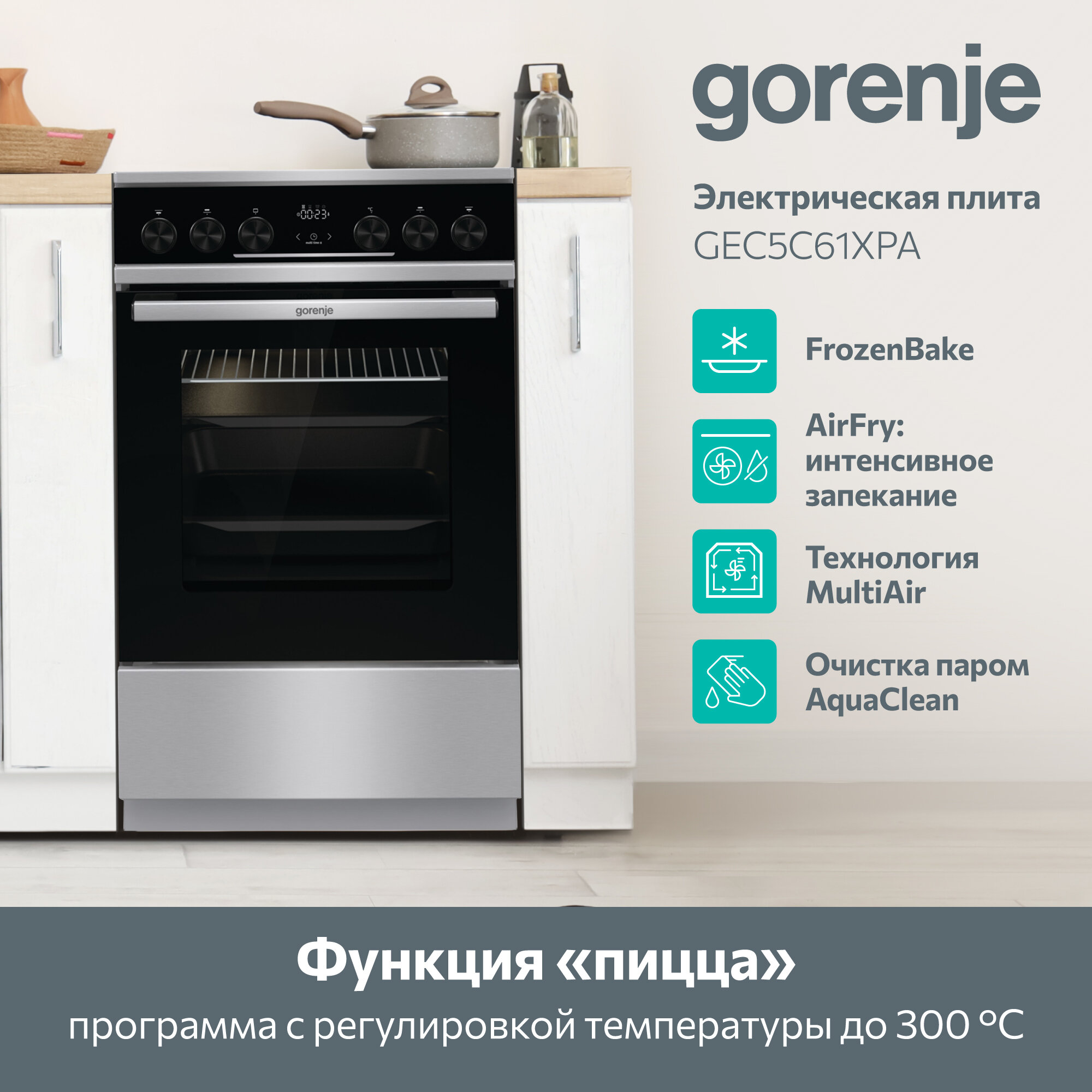 Электрическая плита Gorenje GEC5C61XPA, стеклокерамика, инфракрасная, без крышки, нержавеющая сталь