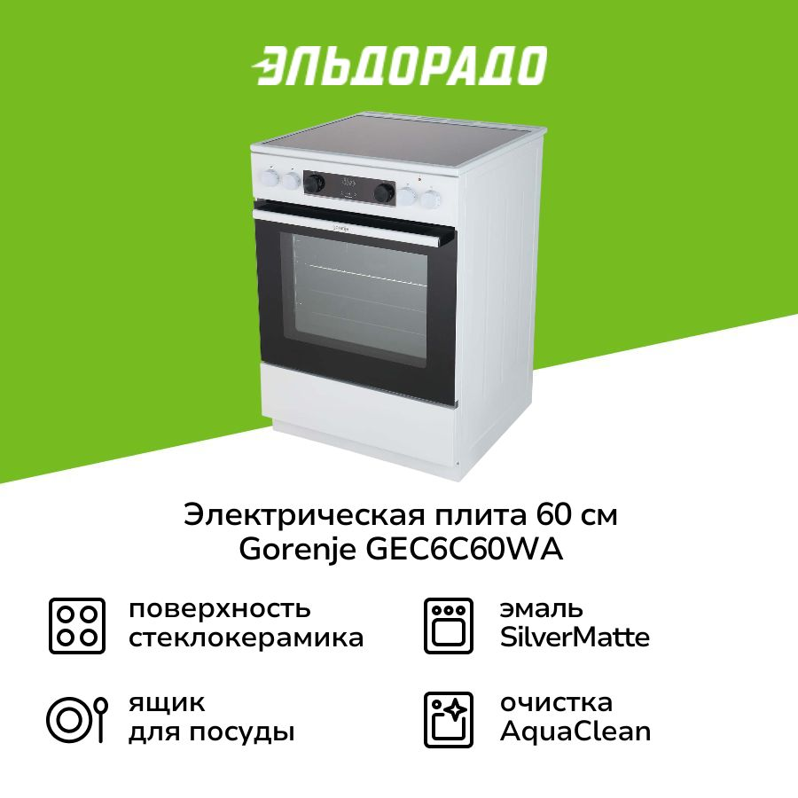 Электрическая плита (60 см) Gorenje GEC6C60WA интересное: