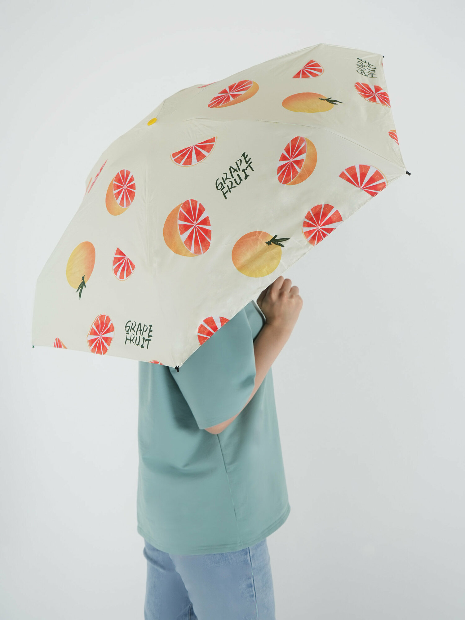 Зонт женский мини / компактный зонт облегченный / маленький зонт / зонт капсула с принтом грейпфрукт интересное: