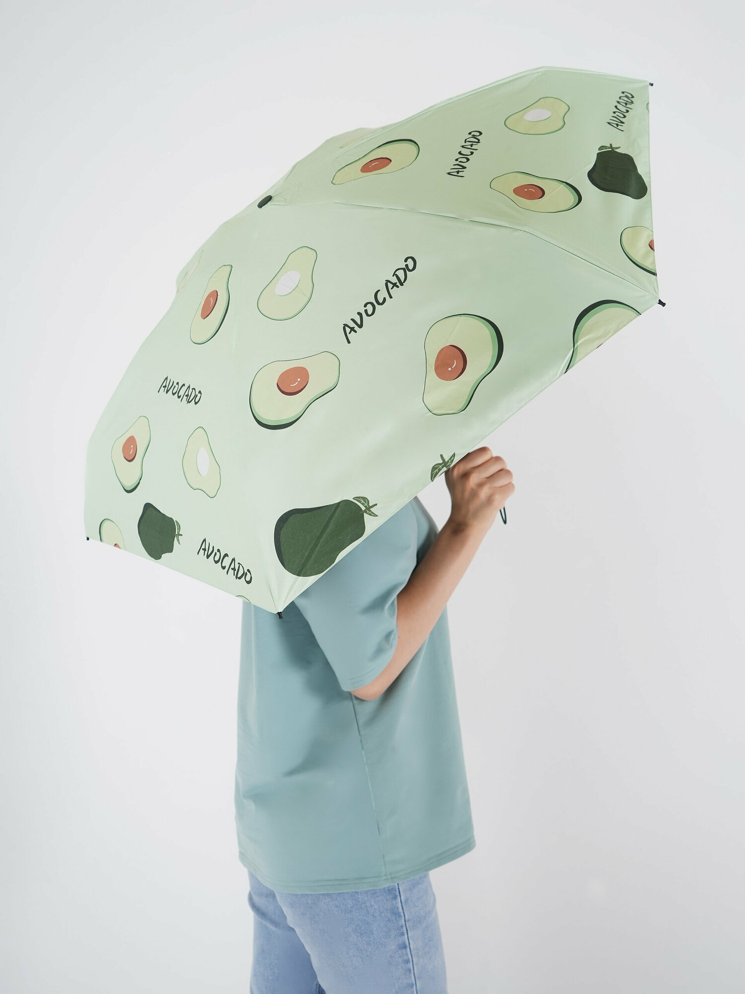Зонт женский мини / компактный зонт облегченный / маленький зонт / зонт капсула с принтом авокадо интересное: