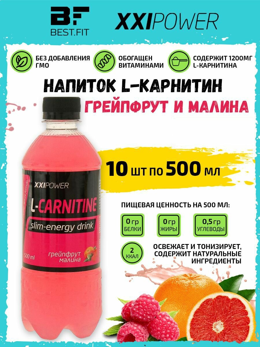Купить Напиток L-Карнитин XXI L-Carnitine (1200мг) 10х0,5л Грейпфрут-Малина /Без сахара/ Жиросжигатель для похудения женщин и мужчин