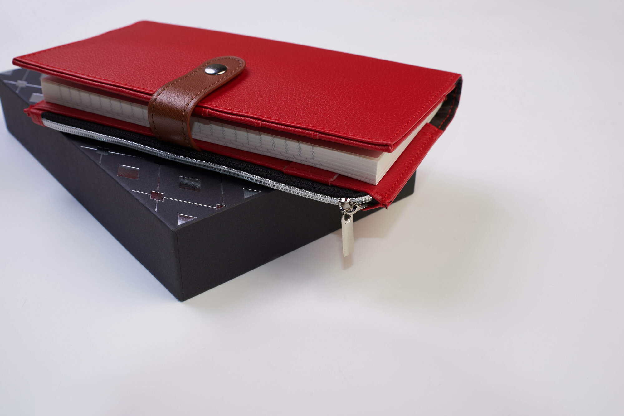 Купить Ежедневник-органайзер (красный) (искусств. кожа, обложка на заклепке, сменный внутренний блок, отделение под карты и ручку)