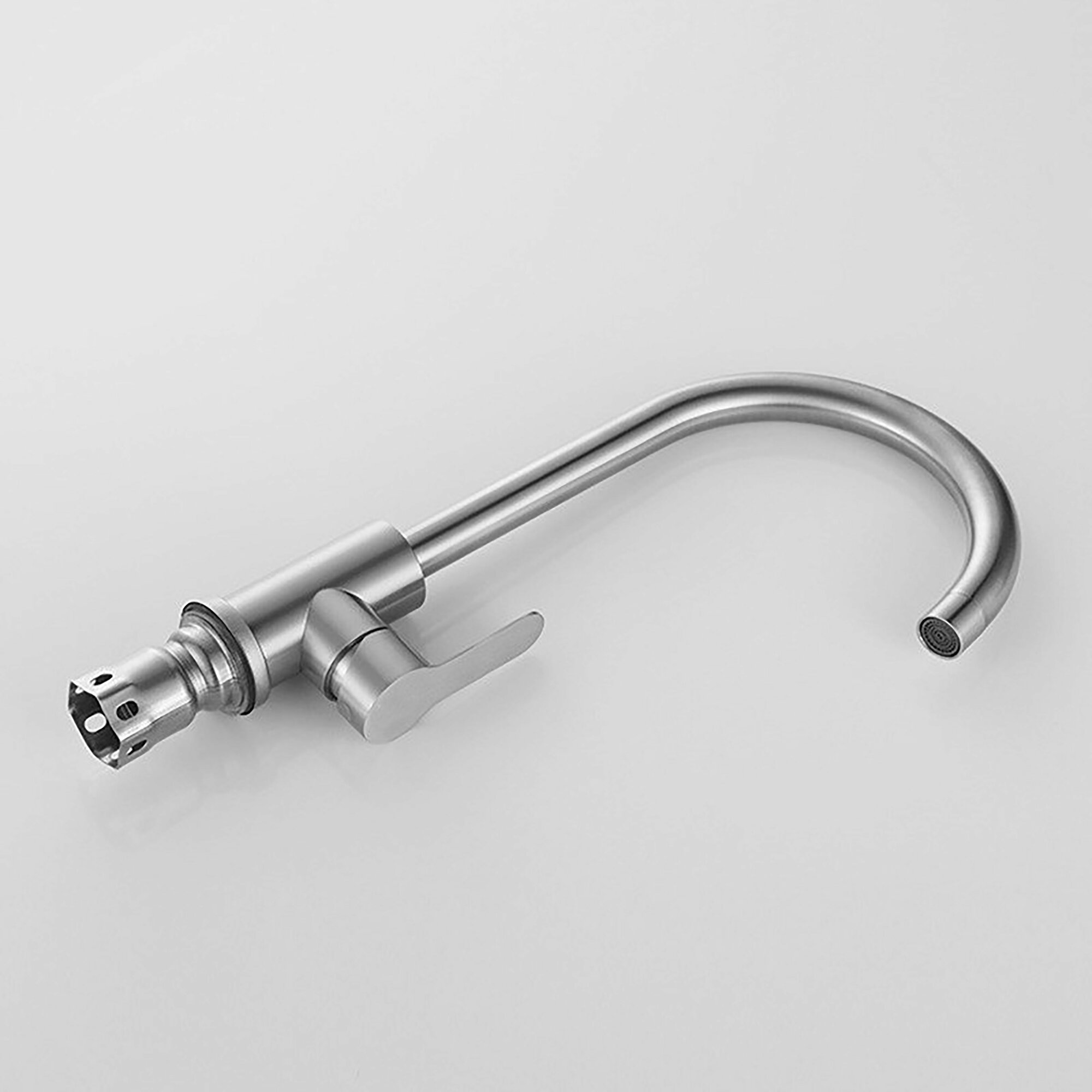 Смеситель для кухни, мойки, однорычажный, высокий, поворотный, нержавеющая сталь, сатиновый