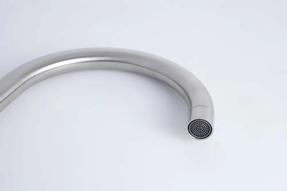 СохранитьСмеситель для кухни высокий, однорычажный, дизайнерский, поворотный, нержавеющая сталь, сатиновый, матовый интересное: