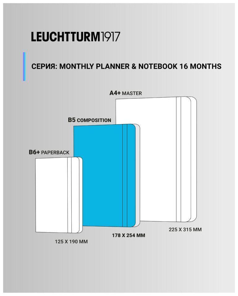 Ежемесячный планер-блокнот датированный Leuchtturm1917 Composition, 68 листов, синий камень интересное:
