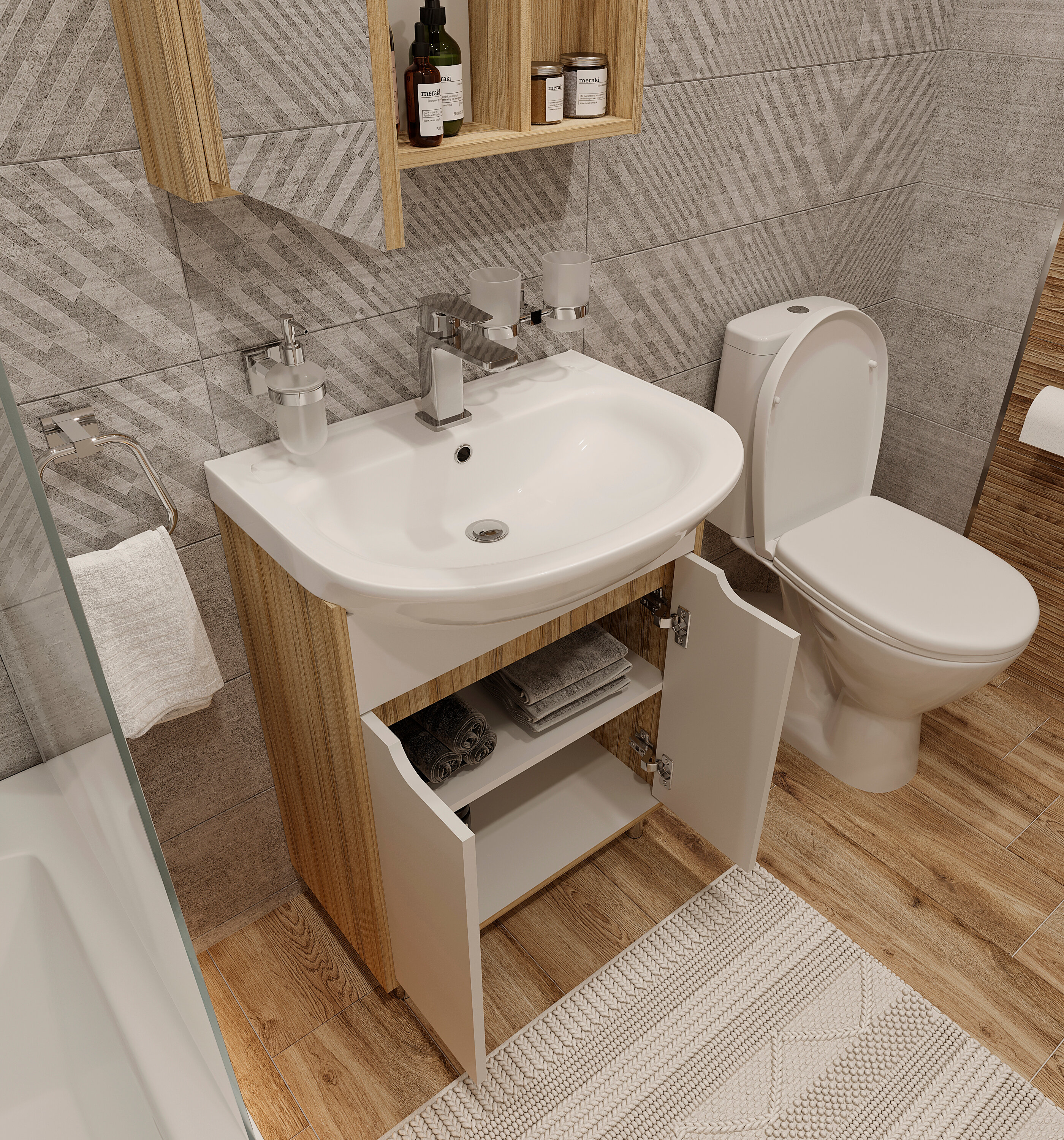 Тумба под раковину в ванную Flamenco, Фламенко 504, белая, 47 х 28.2 x 81 см мебель для ванной