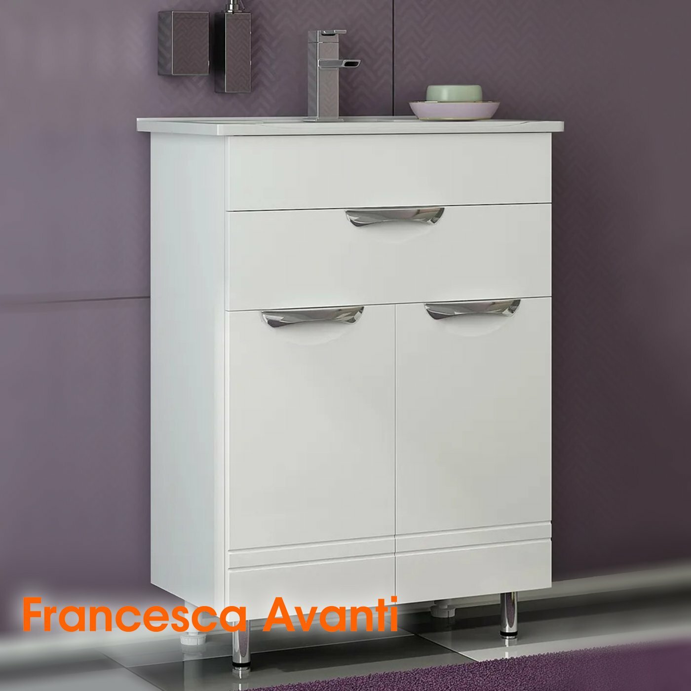 Тумба с раковиной для ванной Francesca Avanti Доминго 55 белый (2 дв, ум. Уют 55)