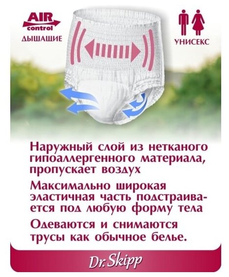 Подгузники-трусы для взрослых Dr.Skipp Light, р-р L, (100-145 см), 10 шт интересное: