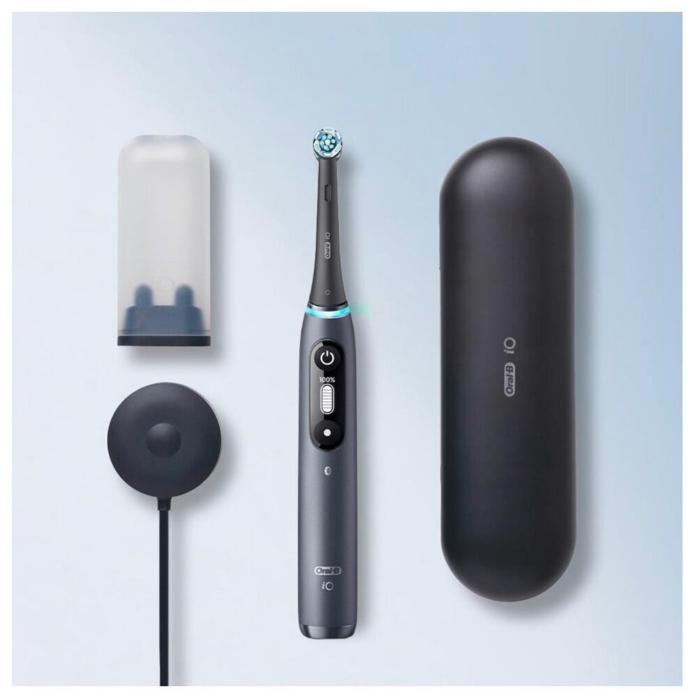 | Подробная комплектация | 2 зубные щетки iO7, 2 насадки, зарядное устройство, дорожный футляр, футляр для насадок |
