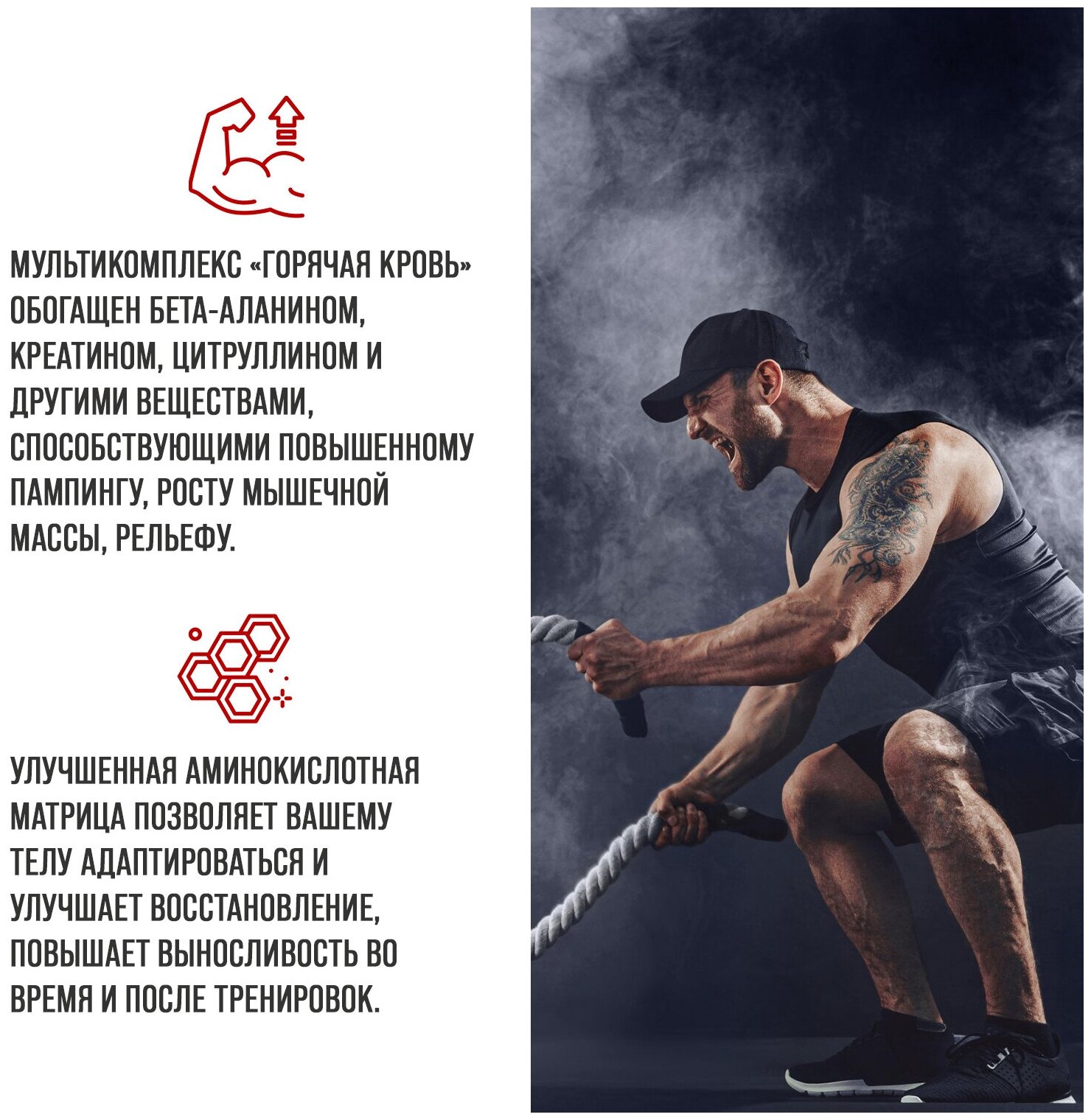 | Основные ингредиенты | BCAA / аргинин / бета-аланин / витамины и минералы / кофеин / креатин / таурин / экстракт гуараны |